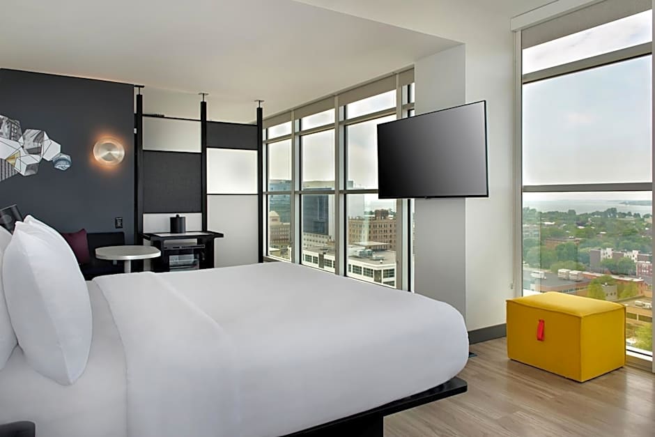 The base rate at Aloft Buffalo Downtown is approximately $169. Be informed that this can vary depending on your room choice and booking dates. Enter dates for a tailored price.