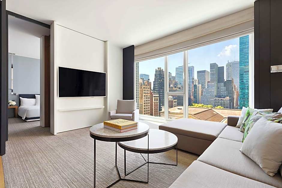 Featuring a city view, this suite offers a 54" flat-screen TV, complimentary mini-bar and marble bathroom with free Apotheke bath amenities.