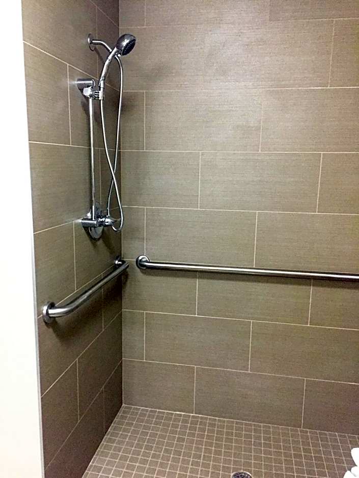 This ADA compliant king suite has air conditioning, sofa bed and satellite TV. It offers railings in the bathroom and a tub.
