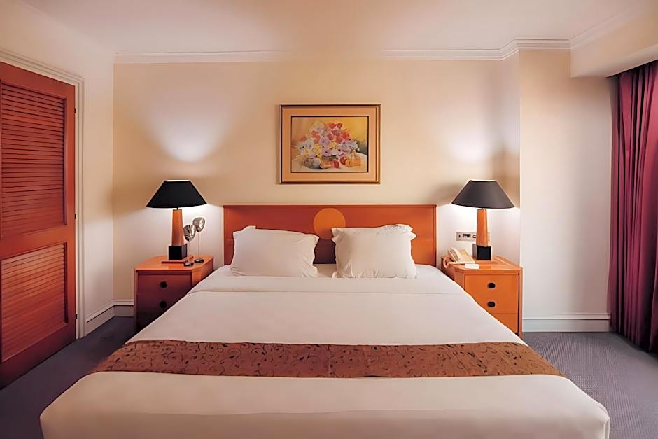 Room configurations span a variety of options, including a King Room, a Double Room, and Studio setups with King beds. For bigger groups, Studio Suites offer combinations like two Queen beds with a sofa bed, or a King with a sofa bed. The Presidential Suite features M Club Lounge Access. All accommodations are non-smoking.