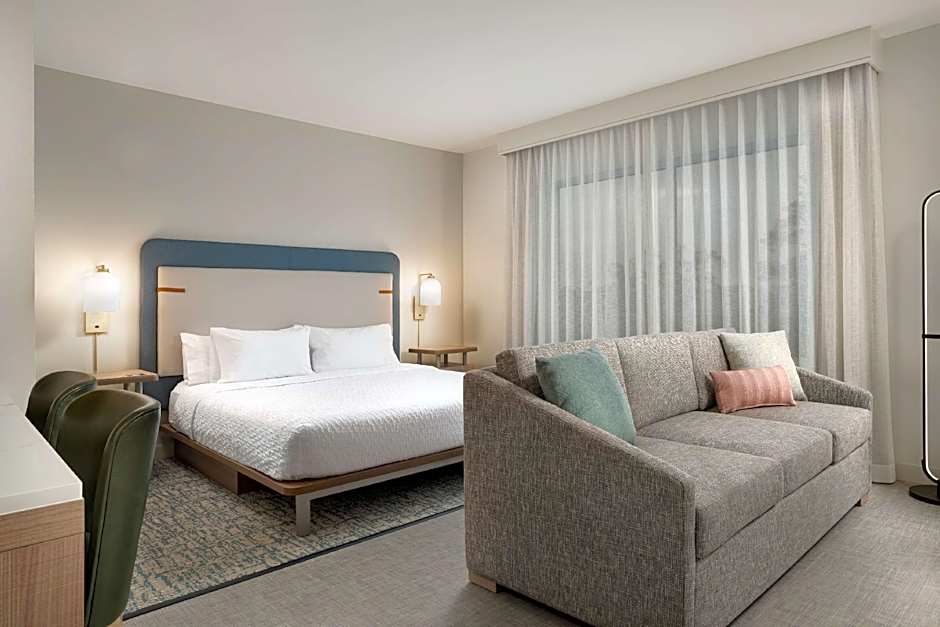 Accommodations consist of suites and studio layouts, with king beds featured in many options. A Suite with 1 King bed accommodates 2 adults and 1 child; a Studio Suite, King offers a king bed plus a sofa bed for extra flexibility. A Kitchen is among the convenient amenities.