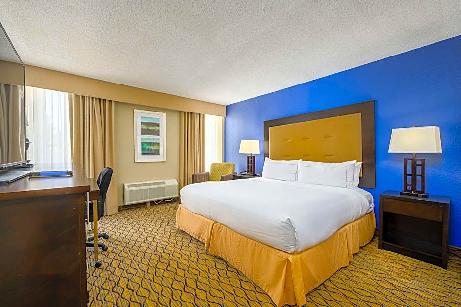 The DoubleTree by Hilton Raleigh Midtown offers Queen Rooms with Two Queen Beds that accommodate up to 4 adults and 3 children. These rooms do not allow smoking and feature two Queen size beds. The hotel also has King Rooms that accommodate 2 adults and 1 child, also without smoking and with 1 King size bed. Additionally, there are King Rooms with Bath Tub - Mobility/Hearing Accessible - Non-Smoking that accommodate 4 adults and 3 children with 1 King size bed and a sofa bed.