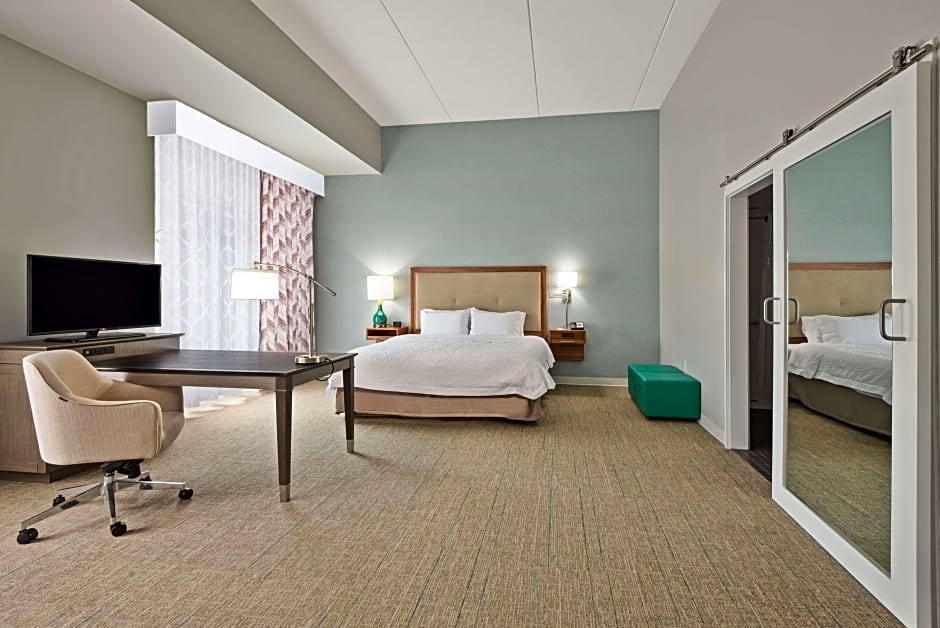 The Hampton Inn & Suites North Huntingdon-Irwin, PA offers a variety of room options. The rooms include King Rooms with a sofa bed or without, Queen Rooms with two Queen beds, King Studios with a sofa bed, and King Studio Suites. All rooms are non-smoking and have a room size of 334 sqft, except for the King Studio Suites which are 366 sqft. The maximum occupancy ranges from 2 adults and 1 child to 4 adults and 3 children, depending on the room type.