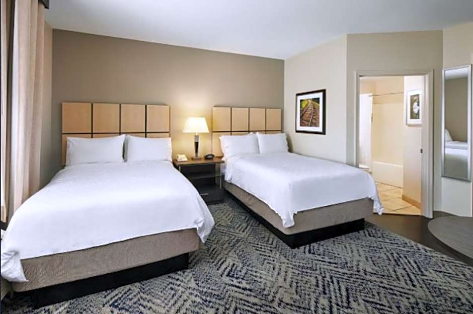 The hotel offers a variety of room types, including Queen Suites, Studio Queen Suites, One-Bedroom King Suites, and One-Bedroom Queen Suites. Some rooms have mobility and hearing accessibility features, such as roll-in showers and additional accessibility features. Smoking is not allowed in any of the rooms. The rooms accommodate either 2 adults and 1 child or 4 adults and 3 children, and the bed sizes range from queen to king or double.
