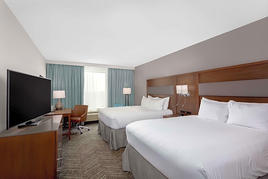The DoubleTree by Hilton Charleston Mount Pleasant offers a variety of room types, including Queen Rooms with Two Queen Beds, King Rooms, One-Bedroom King Suites, King Studio Suites, and King Rooms with mobility or hearing accessibility features. Smoking is not allowed in any of the rooms. The rooms accommodate different numbers of adults and children, ranging from 2 adults and 1 child to 4 adults and 3 children. The beds sizes vary between Queen and King.