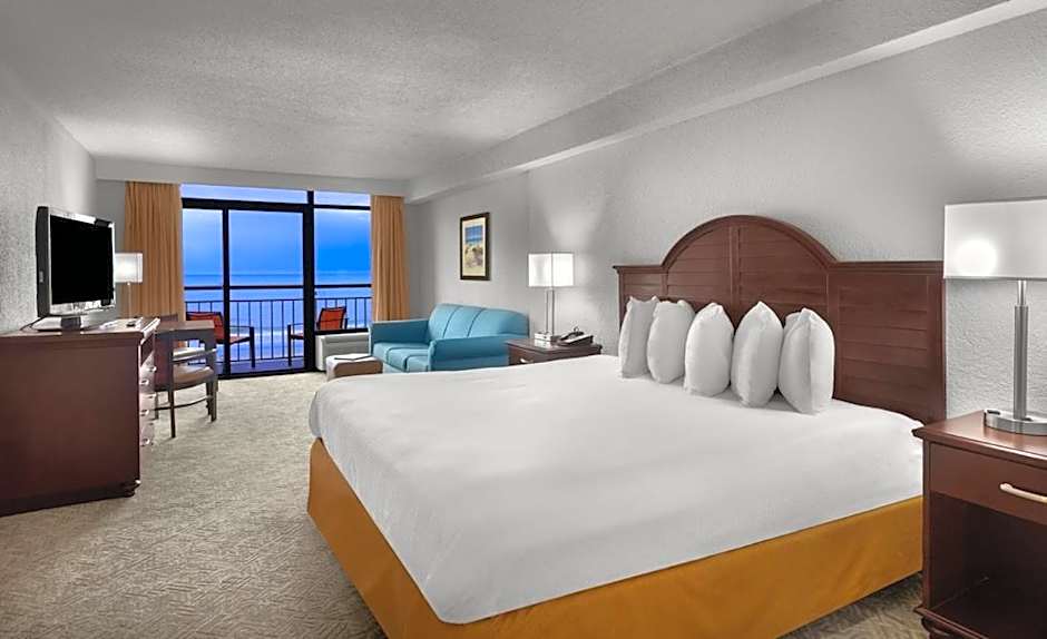 Beachfront views, balcony options, and the convenience of beach chairs and loungers round out a traveler-friendly stay near Myrtle Beach’s shoreline.