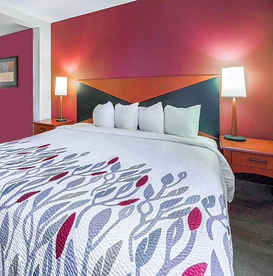 The Red Roof Inn Etowah – Athens, TN offers several types of rooms. These include Deluxe rooms with various bed configurations such as one king bed and one double bed or two queen beds. There are also Superior King rooms with a sofa bed option, as well as rooms with disability access and roll-in showers. All rooms are non-smoking and have a size of 280 sqft, accommodating different numbers of adults and children.
