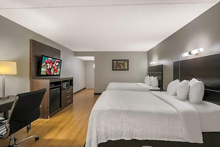 The Red Roof Inn PLUS+ & Suites Knoxville West - Cedar Bluff offers a variety of room options. There are Superior Rooms with Two Queen Beds, Deluxe King Rooms, and Premium Rooms with Two Queen Beds. Some rooms have balconies or are poolside. All the rooms are smoke-free, and the bed sizes vary between King and Queen. The rooms can accommodate either 2 adults and 1 child or 4 adults and 3 children, depending on the room type.