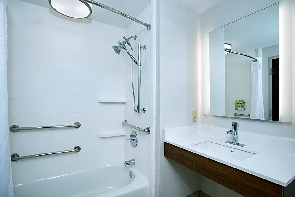 Just one minor thing I noticed. The button to switch the shower to the hand held device was on the top of the shower head so you would need to be able to stand to reach it to switch it over. So if I were traveling alone it would have been difficult to reach. However, having someone with me to switch it over allowed the shower to work perfect for handicap accessibility. The shower was nice and clean with plenty of water pressure which was great. I would definitely stay here again.