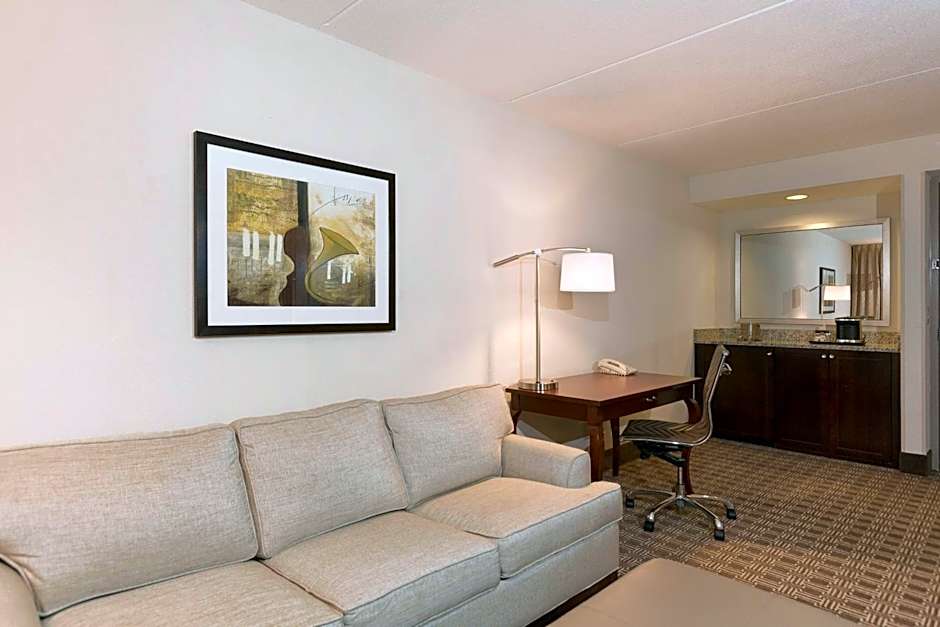 The DoubleTree Suites by Hilton Nashville Airport offers a variety of room options, including King Suites, One King Suites accessible with a tub, and Queen Suites with two queen beds and a sofa bed. All rooms are non-smoking and range in size from 323 to 452 square feet. The rooms can accommodate between 4 and 5 adults, along with 3 to 4 children.