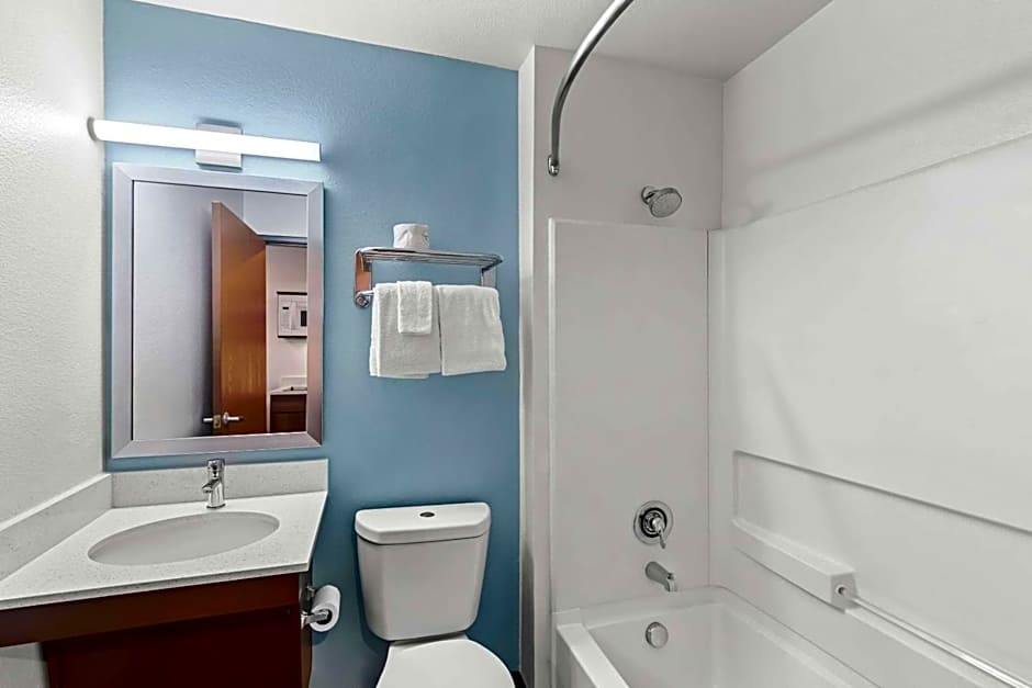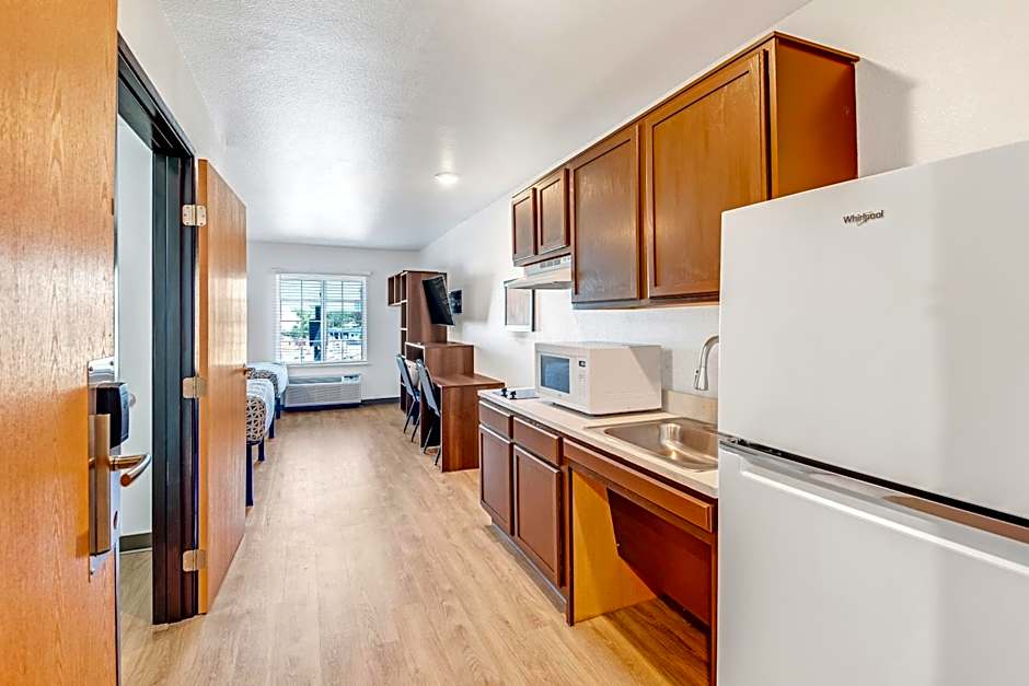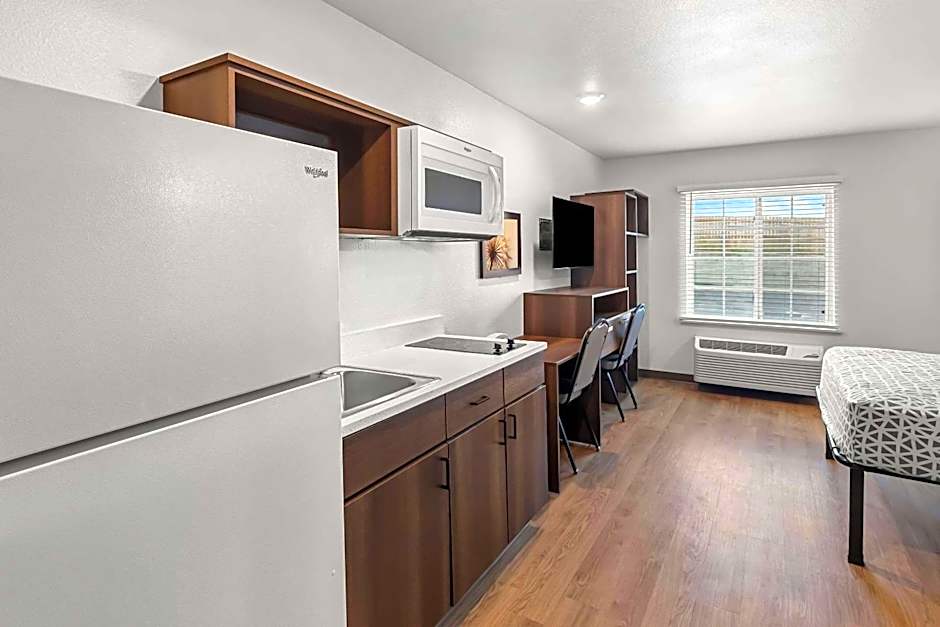 Nice spacious clean rooms with kitchens, sink, full size fridge and 2 burners. Small gym downstairs, vending machines. Very easy 34 freeway accessible. Front desk was very friendly no matter who was at the desk make you feel welcome.