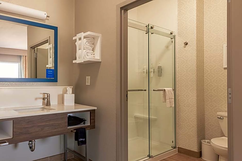 Desk, ergonomic chair, armchair, mini-refrigerator, free WiFi, 32-inch LCD flat-screen HDTV. Unwind in this spacious non-smoking studio suite, featuring a comfortable king-sized bed. Surf the web with our free WiFi access, or use it to get some work done in comfort at the desk with ergonomic chair. Sit back in the armchair, put your feet up on the ottoman, and watch premium HD channels on the 32-inch LCD TV. Settle down for the night in the clean and fresh Hampton bed®. Other amenities in this studio suite include weekday newspaper delivery, fluffy towels, and a coffee machine.