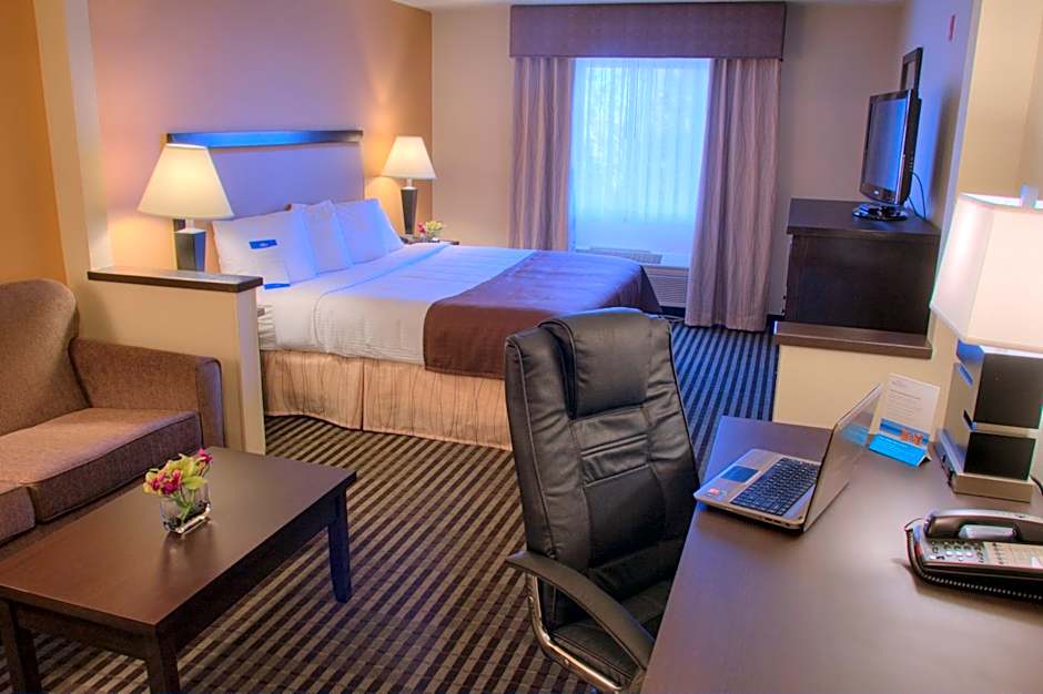 The Baymont by Wyndham Dallas/ Love Field hotel offers a variety of room types including King Rooms, Queen Rooms with Two Queen Beds, and Studio Suites. All rooms are non-smoking and have different occupancy capacities, accommodating either 3 adults and 1 child or 4 adults and 2 children. The beds offered range from queen size to double beds. Room sizes range from 269 sqft to 323 sqft.