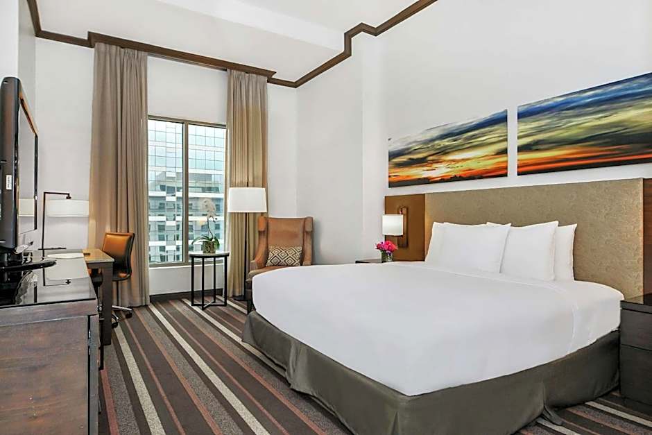 Grain is the on-site restaurant, offering a convenient spot for a quick bite or a relaxed meal after a day of Dallas exploration. The rooftop outdoor pool is an all-season, adults-only retreat with skyline views. Poolside guests will find free beach chairs and loungers, perfect for soaking up the sun between swims, and a drink at the on-site bar caps off the evening in style.