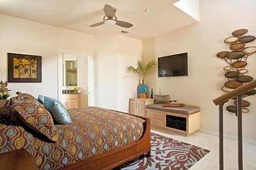 Featuring a view of Lake Granbury, this two-level loft has a balcony and upstairs sitting area with a wet bar. The suite has 2 flat-screen TVs, DVD player, and music docking station.