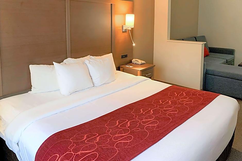 The Comfort Suites Bush Intercontinental Airport offers a variety of room types including King Suites, Double Suites, and Standard King Suites. The rooms are non-smoking and have a room size of 441 sqft. Occupancy ranges from 2 adults and 1 child to 5 adults and 4 children. The bed options include king size beds, double beds, and sofa beds.