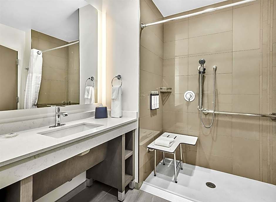 Featuring free toiletries, this suite includes a private bathroom with a walk-in shower and a hairdryer. The fully equipped kitchen features a stovetop, a refrigerator, a microwave and a tea and coffee maker. This wheelchair accessible suite has air conditioning, a seating area with a flat-screen TV and a roll-in shower.