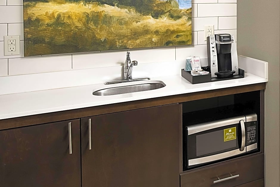 This accessible room features a 43-inch flat-screen TV, mini-refrigerator, microwave and desk.