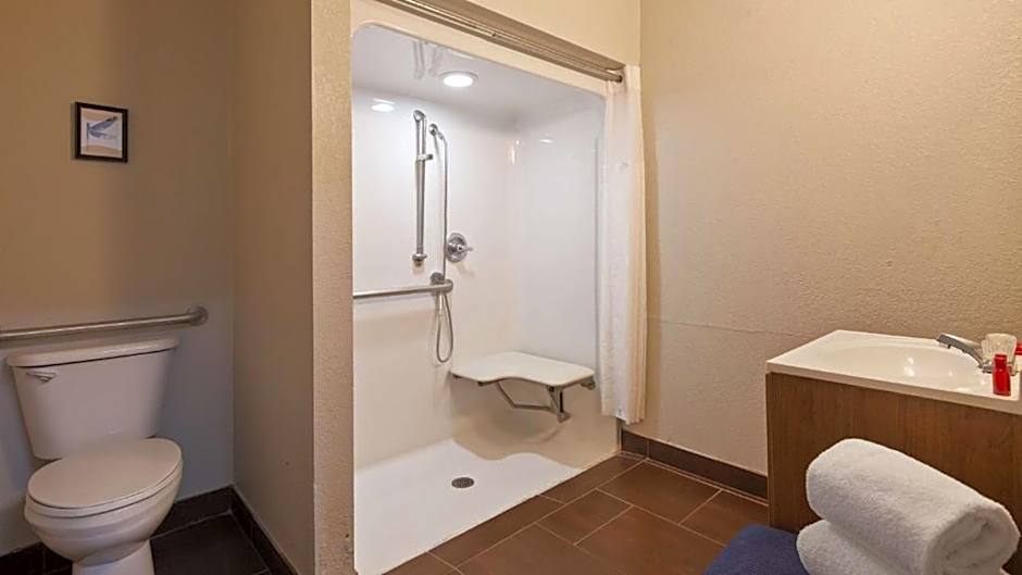 2 Queen Communication Mobility Accessible Roll Shower includes 2 queen-size beds 150-154 width and is Wheelchair-accessible with a Disability-friendly bathroom.