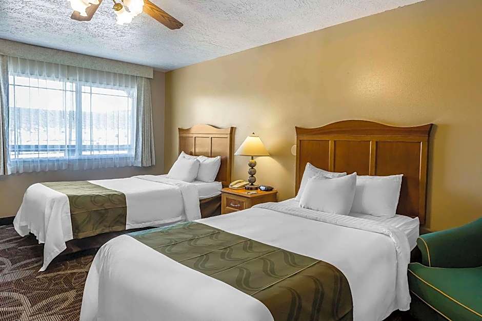 The available room types at Quality Inn Bryce Canyon include Double Rooms with Two Double Beds (accessible/non-smoking), Queen Rooms with Two Queen Beds (accessible/non-smoking), and King Rooms (non-smoking). All rooms have a size of 344 sqft, except for the King Rooms which are 312 sqft. Smoking is not allowed in any of the rooms. The occupancy varies, with the Double and Queen Rooms accommodating 4 adults and 2 children, while the King Rooms accommodate 2 adults.