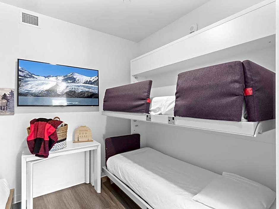 This suite's standout feature is the hot tub. In the well-fitted kitchen, guests will find a stovetop, a refrigerator, a dishwasher and kitchenware. The spacious air-conditioned suite offers a TV with cable channels, a tea and coffee maker, a dining area, video games as well as mountain views. The unit has 1 bed.