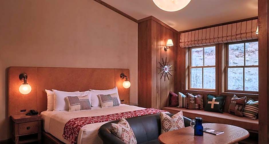 The hotel offers a variety of room types including suites and double rooms. Suites include the Mountain Suite, Sundance Suite, and Loft Suite with sizes ranging from 700 sqft to 947 sqft. Double rooms include the Standard Room and Studio, all of which are non-smoking and accommodate 2 adults and 2 children. The Mountain Suite and Loft Suite have larger sizes and can accommodate more guests, with the Loft Suite accommodating up to 6 adults and 2 children.