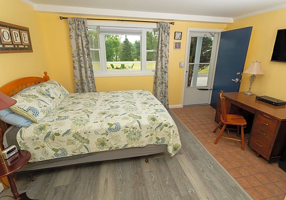 This double room features a cable TV, microwave and private entrance. This room is not a pet friendly room.