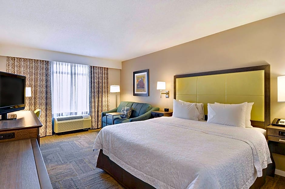 The Hampton Inn Alexandria/Old Town offers a variety of room types including One-Bedroom King Suites, King Rooms, and Double Rooms. All rooms are non-smoking and can accommodate 4 adults and 3 children. The One-Bedroom King Suites and King Rooms have 1 King size bed, while the Double Room has 2 Double beds. Additionally, there is a King Room with Bath available for guests with mobility access, accommodating 3 adults and 2 children.