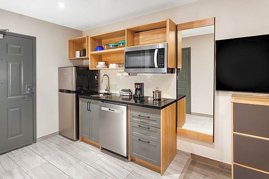 Payment options include Discover, Visa, Mastercard, and American Express, with cash not accepted. The hotel sits about 1,6 mi from the city center, offering easy access to downtown attractions. A broad mix of studio and suite options provides flexible layouts for different travel plans, from solo stays to small groups.
