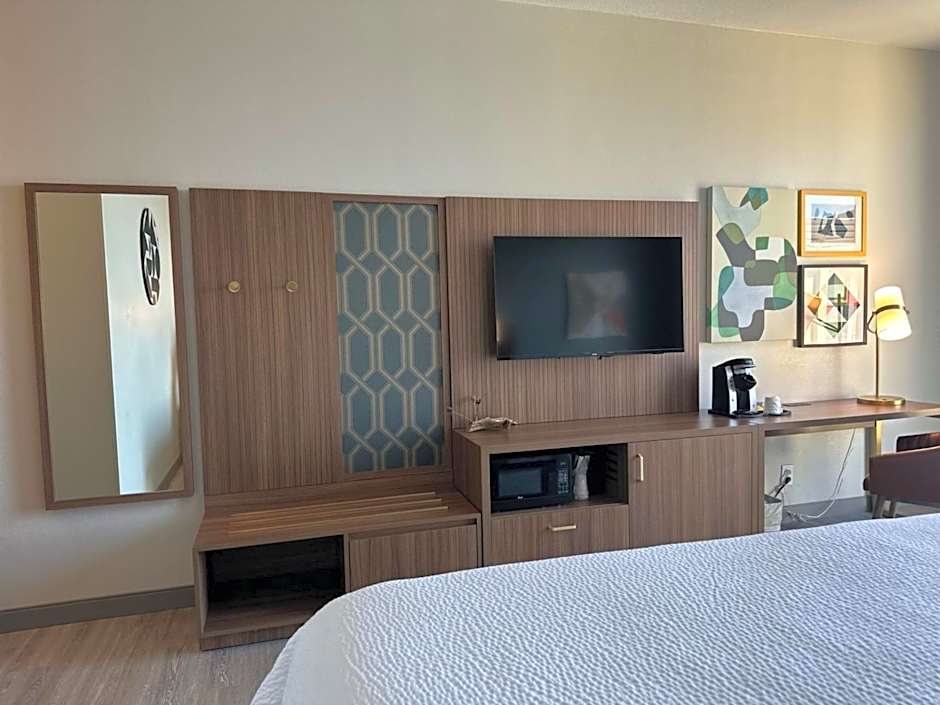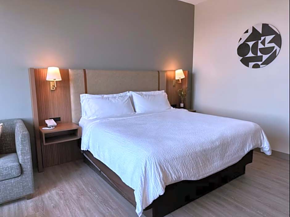 This room features a king bed and mobility accessible tub