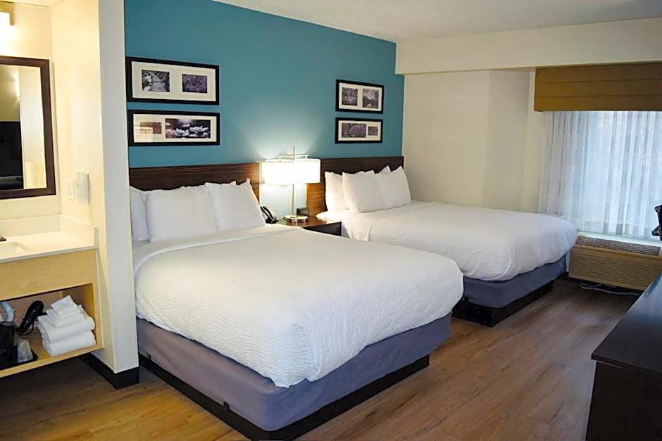 Room options cover a range of needs, including configurations with two queen beds, a king bed, or a single queen bed. These non-smoking layouts typically accommodate up to four guests, with many spaces around 355 square feet for a touch more room to spread out.