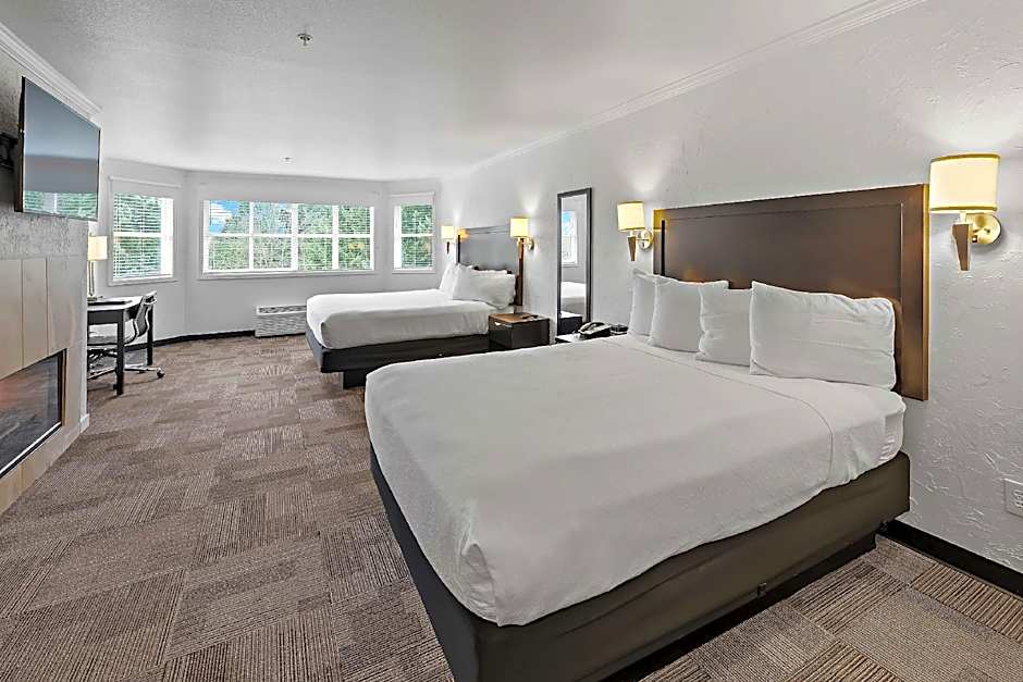 The Best Western Wesley Inn & Suites offers a variety of room types including double rooms, quadruple rooms, suites, and family rooms. All rooms are non-smoking and have a room size of 248 sqft. The occupancy ranges from 2 adults and 1 child to 6 adults and 4 children. The bed sizes vary, with options including King, Queen, and Sofa beds. Some rooms also feature balconies, fireplaces, and kitchenettes.