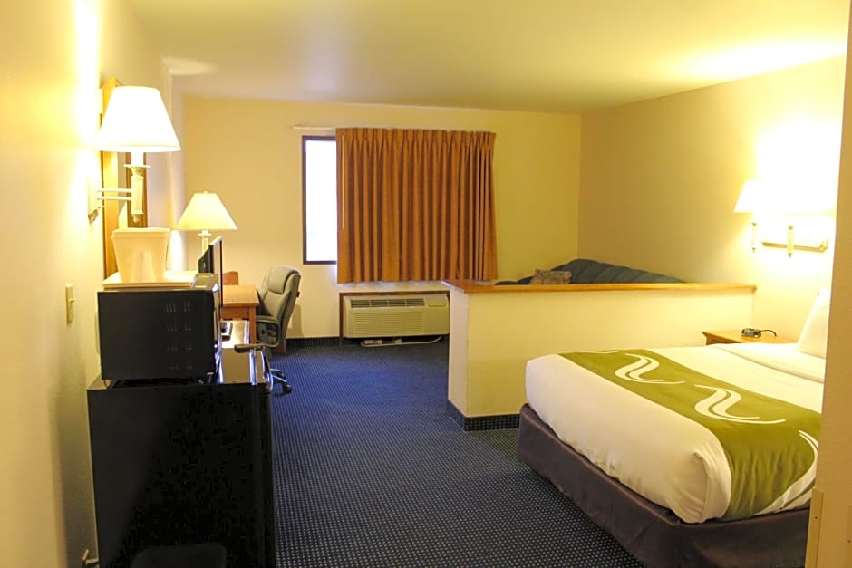At Quality Inn & Suites Goldendale, the available room types include Efficiency Queen Suite with Sofa-Bed, Queen Room, Queen Room with Two Queen Beds, and Queen Suite. Smoking is not allowed in any of the rooms. Room sizes range from 97 sqft to 205 sqft. The rooms can accommodate between 2 to 4 adults and 1 to 3 children. The bed sizes available are Queen size beds and in some rooms, there is also a Sofa Bed.