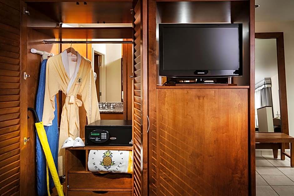 The hotel offers an on-site restaurant called Pineapple Cafe, featuring a traditional ambiance and American cuisine.