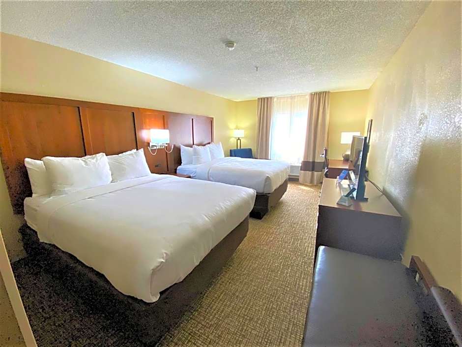 The Comfort Inn Charleston, WV offers a variety of room types. These include a Queen Room with Two Queen Beds with Roll-In Shower, a Standard King Room with Sofa, a King Room with Roll-In Shower, a Standard Queen Room with Two Queen Beds, and a Standard King Room with Chair with Ottoman. All rooms are non-smoking and have a room size of 355 sqft. The occupancy for the rooms ranges from 2 adults and 1 child to 4 adults and 3 children.