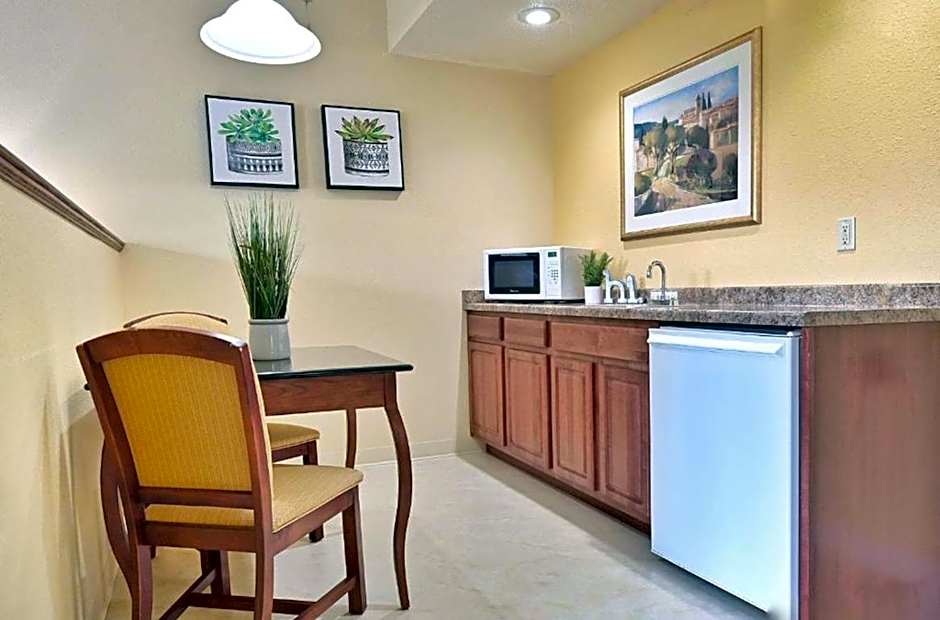 The suite's kitchen, which features a refrigerator and a microwave, is available for cooking and storing food. The spacious suite offers air conditioning, a tea and coffee maker, a seating area, a safe deposit box and a TV with cable channels.