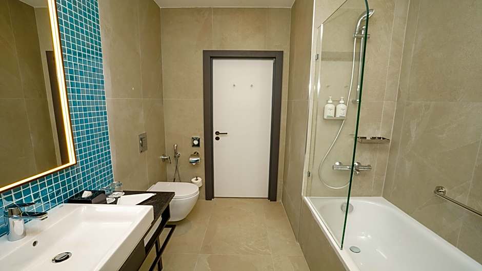 This suite features a private bathroom and a sofa. The air-conditioned suite provides a flat-screen TV with satellite channels, soundproof walls, a wardrobe, a safe deposit box as well as city views. The unit offers 1 bed.