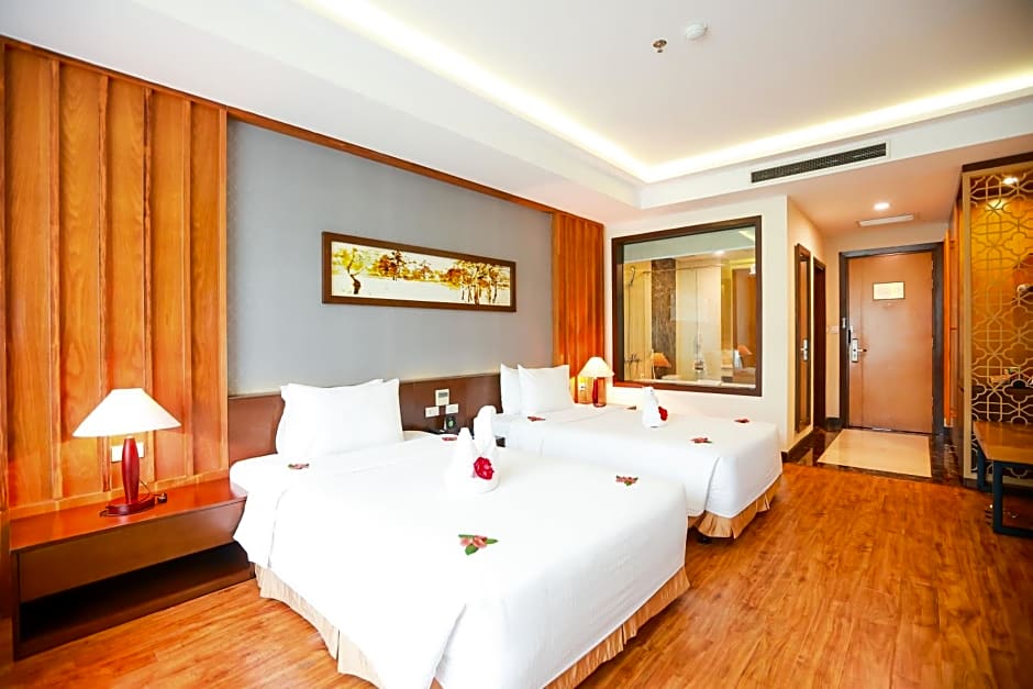 When nighttime falls, retreat to the stylish sanctuary of your chosen accommodation. Whether you opt for a Deluxe Twin Room with sea views or the opulent Presidential Suite, each space is designed to envelop you in comfort. From soundproof rooms that ensure peaceful snoozing to extra-long beds perfect for sprawling after a day of adventure, every detail is tailored for your enjoyment. Plus, with attentive staff available around the clock, your every wish will be their command. So pack your bags, grab your camera, and prepare for an unforgettable escape at Muong Thanh Luxury Nhat Le Hotel!