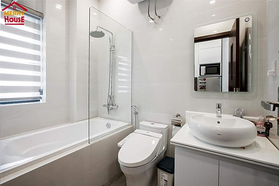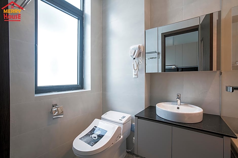 Merry House Imperia is a 3-star aparthotel in Haiphong, Vietnam, about 1.3mi from the city center. Address: BH 04-12A, Khu đô thị Vinhomes Imperia, Phường Thượng Lý, Quận Hồng Bàng. This stay blends homey comforts with hotel perks: free Wifi, air conditioning, a private entrance, and a kitchenette with kitchenware. A balcony offers a view and room service is available; free parking is on site. Notable extras include an on-site bar, garden and playground, elevator, beach chairs/loungers, free toiletries, bidet, bathtub, and soundproof rooms. An outdoor swimming pool carries an extra charge, and airport shuttle is available for an added fee.
