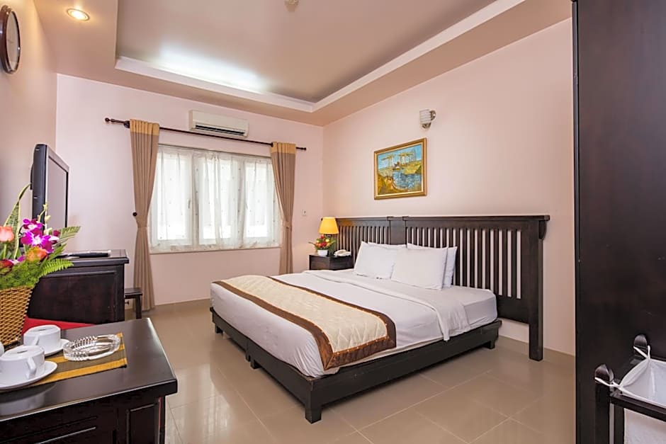 Terrace, patio, and balcony spaces invite sun-drenched moments, while soundproofing keeps evenings quiet. The 24-hour front desk helps with plans around Tan Phong Ward and the wider Ho Chi Minh City area, and a nearby golf course is listed for an extra fee for those looking to add a little sport to the stay.