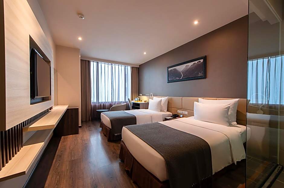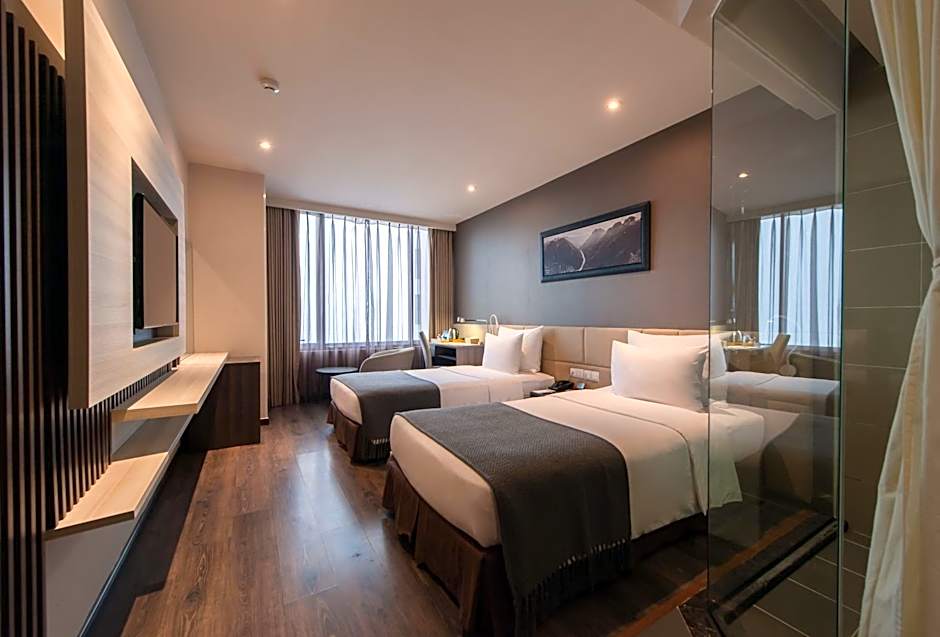This twin room offers a rooftop pool. Providing free toiletries and bathrobes, this twin room includes a private bathroom with a walk-in shower, a bidet and a hairdryer. The air-conditioned twin room provides a flat-screen TV with cable channels, a private entrance, a mini-bar, a seating area as well as city views. The unit offers 2 beds.