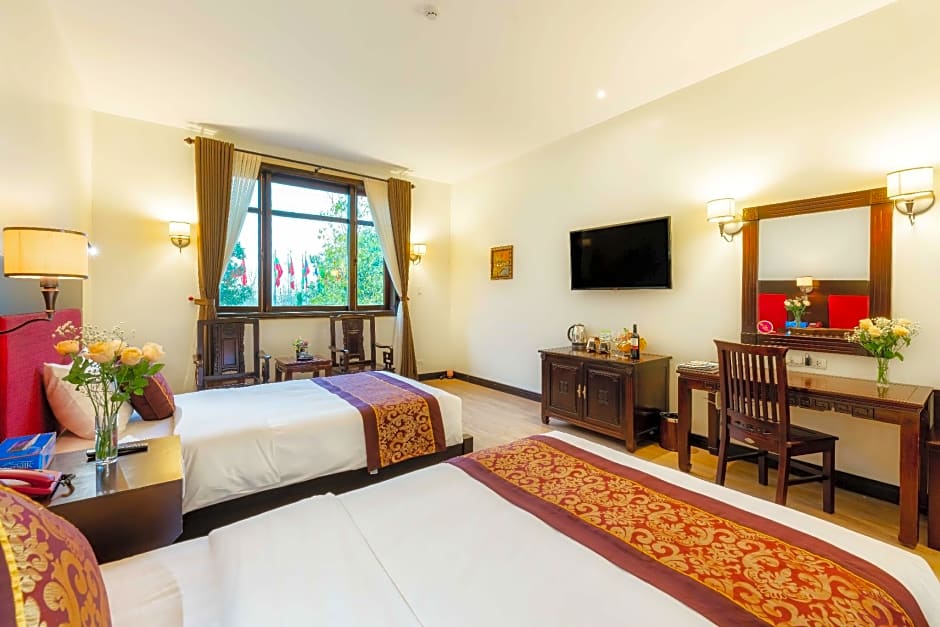 Bai Dinh Hotel offers a Deluxe Double or Twin Room with 388 sqft, accommodating 2 adults in a Queen size bed or 2 Twin beds. Smoking is not allowed. The Executive Triple Room is 710 sqft with accommodations for 3 adults and 1 child in 3 Twin beds, also with a non-smoking policy.