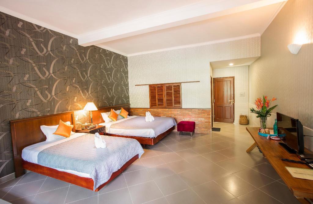 For those craving flavorful bites and a taste of local and international cuisine, the hotel’s on-site restaurant, Happy Belly, is a delightful choice. Serving up Vietnamese classics alongside European favorites, the restaurant’s warm, family-friendly, and romantic atmospheres make it a versatile dining spot that can suit any mood. Whether you’re enjoying a hearty breakfast before heading out or a leisurely dinner under the stars, Happy Belly adds a tasty touch to your stay.