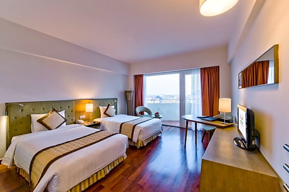 Located from Floors 6 to 10, this twin room offers a balcony offering views over the streets of Hue, along with the Perfume River.