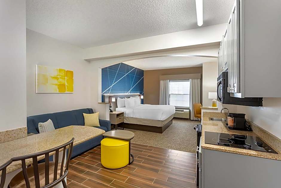 物業提供標準客房與套房混合選擇,列示房型皆為禁菸。房型配置包含 King 或 Queen 床,部分套房有沙發床以增加彈性;數款房型也配備廚房設施,是結合實用設備與舒適空間的旅客友善選擇,適合放鬆住宿。
